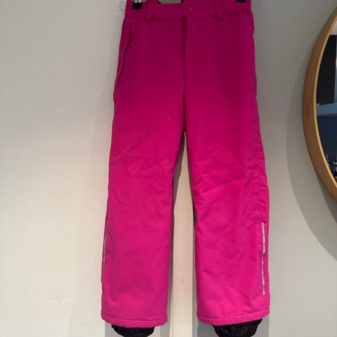 Helly Hansen barnebukse / seilbukse / regnbukse i blå nylon, unisex og størrelse XS, (158cm-162cm). Buksen har elastisk linning i livet og rette ben. Glidelås og borrelås i siden. Ytterstoff og fôr er i 100 % nylon. Plagget kan maskinvaskes på varm vask. Skal ikke strykes, blekes, tørketromles eller renses, og det anbefales å unngå tøymykner. Egner seg som ytterbukse til bruk ute i variert vær.