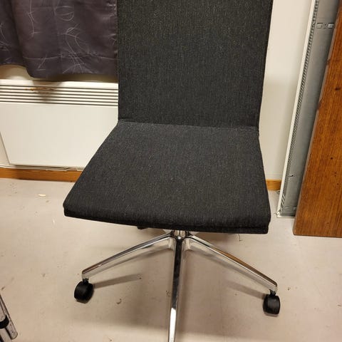 Kontorstol i rød farge med polstret sete og nettingrygg. Stolen har femhjuls understell i plast/metall og roterende sete. Egnet som enkel kontor- eller arbeidsstol til bruk ved skrivebord eller hjemmekontor.