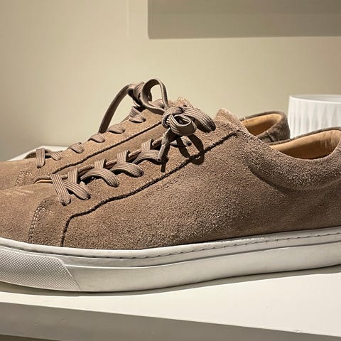 Skoene er brukt og har noe skitt, men de kan enkelt vaskes og bli mye finere igjen.