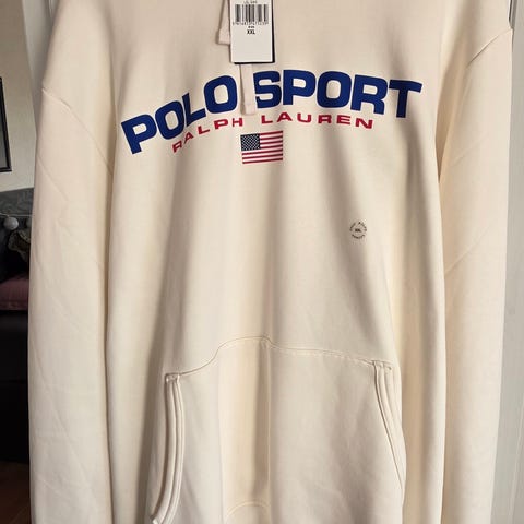 Ralph Lauren Polo joggedress for herre i størrelse XXL. Sett bestående av hettejakke med glidelås og joggebukse. Farge grå. Materiale i bomull. Hettejakken har snøring i hetten og ribbestrikkede kanter. Joggebuksen har strikk og snøring i livet, samt ribbestrikkede ankler. Diskré Polo-logo på både jakke og bukse.