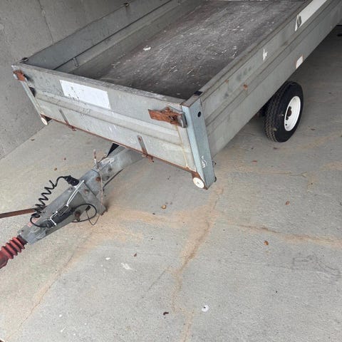 God dekk og bunnplate. Lys virker, kassemål 190×142 cm , totalvekt 600 kg.Tilhenger er registert.Skambud ikke besvart.Tel 46385124.