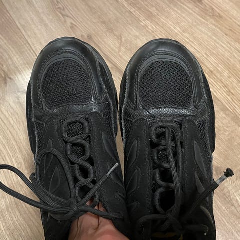 Skoene er kun prøvd på inne, men ble aldri brukt ute fordi de er for små.