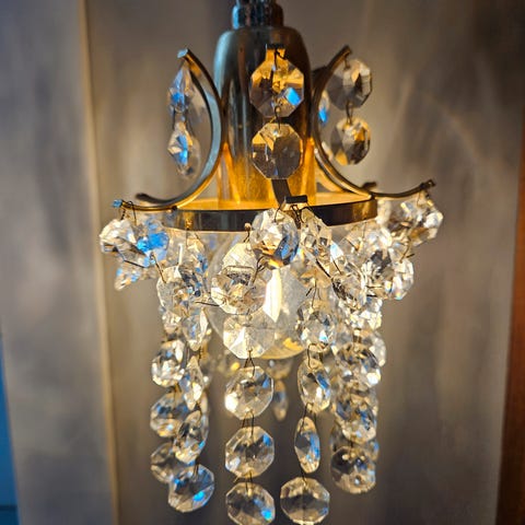 Nydelige vintage vegglamper i messing med krystall prismer