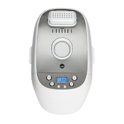 Steba STBM2 brødbakemaskin i rustfritt stål med digitalt display og betjeningspanel på toppen. Maskinen har flere forhåndsinnstilte programmer for ulike typer brød og deig, samt funksjoner for valg av vekt, skorpefarge og tid. Lokket har vindu for innsyn under bakingen, og bakeformen er uttakbar med eltekrok i bunnen. Egnet til baking av brød, kaker og ulike deigtyper i hjemmet.