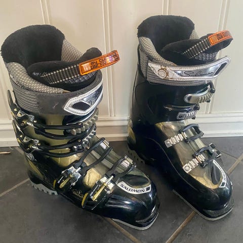 Salomon Team alpinstøvler i svart med hvite spenner. Støvlene har tre justerbare spenner for god tilpasning rundt fot og legg. Passer til alpint bruk i alpinbakke. Egner seg for brukere som trenger stabile og funksjonelle alpinstøvler. Støvlene har standard såle som passer til vanlige alpinbindinger.brukt en gang