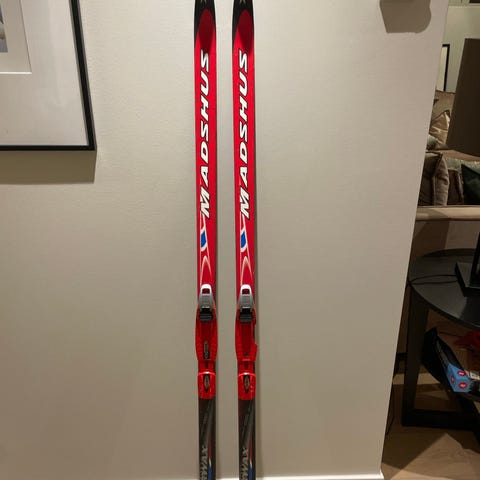 Madshus Race Line Wax langrennski i lengde 150 cm. Fargekombinasjon rød og hvit med svarte detaljer.