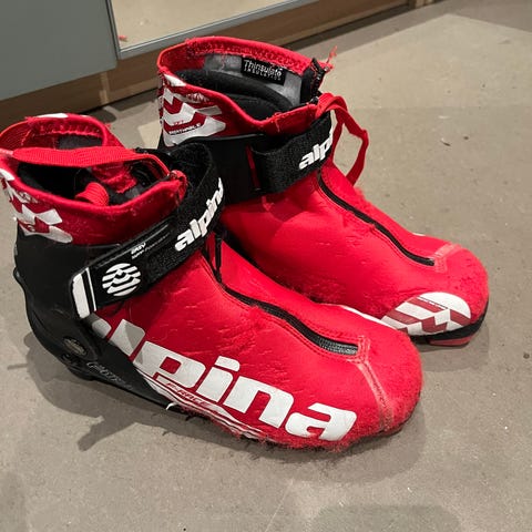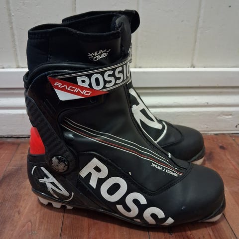 Alpina Combi Junior langrennsstøvler str 35, i svart og sølv. Modellen har glidelås i front og integrert overtrekk som dekker lissene.