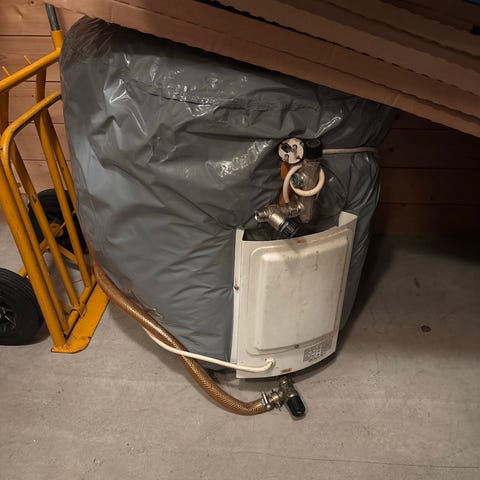 Laget i 1995 og har vært montert siden. Byttes pga. nytt kjøkken