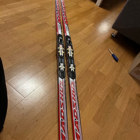 Madshus Birkebeiner langrennski med feller. Noen ujevnheter i sålen etter at jeg har vært litt for ivrig med strykejernet. Selges derfor billig.
