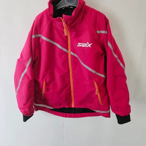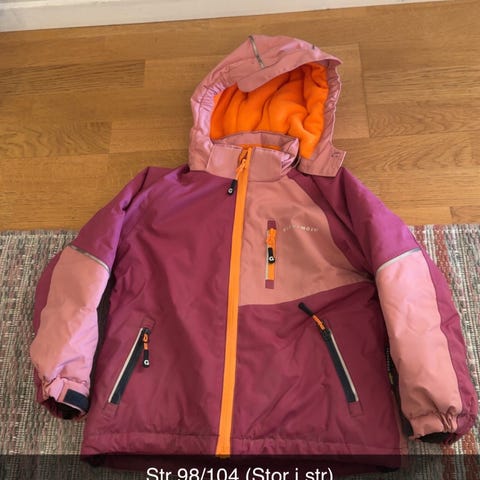 H&M skalljakke for jente i størrelse 140. Jakken er flerfarget med felt i blant annet rosa, beige og rødtoner. Materiale i polyester. Modellen har hette, hel glidelås foran og elastikk ved håndledd. Refleksdetaljer på ermer gir bedre synlighet. Egnet som ytterjakke til hverdagsbruk og utendørsaktiviteter i skiftende vær.