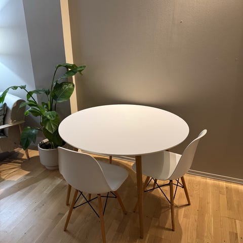 Rundt spisebord med 4 stoler