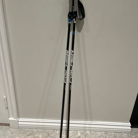 Fischer skistaver i svart med grå håndtak og håndstropper. Egner seg til langrenn.