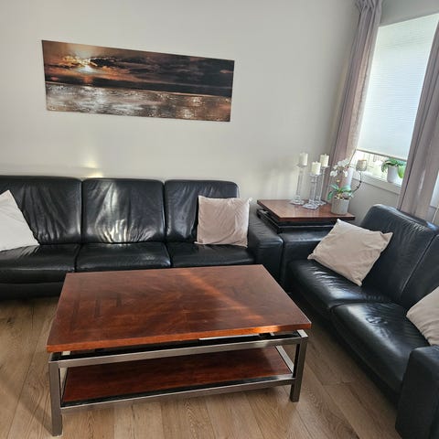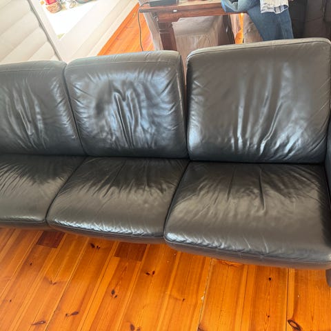 Fin treseter stressless sofa i sort skinn med sjeselong