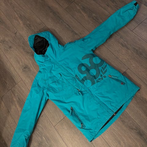 Snowboard overjacket selges etter et par sesonger i bakken. Den er både vind og vann avstøtende og har lite bruksmerker. Svært praktisk til å ta over en hettegenser eller ullgenser samtidig som den har egen kortlomme på høyre side og stort rom ved magen