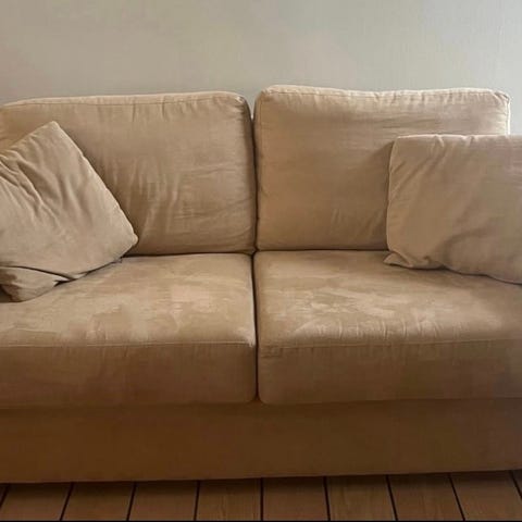 Godt brukt sofa gis bort. En del flekker på sofaen som muligens går bort eller eventuelt forbedres ved rens.