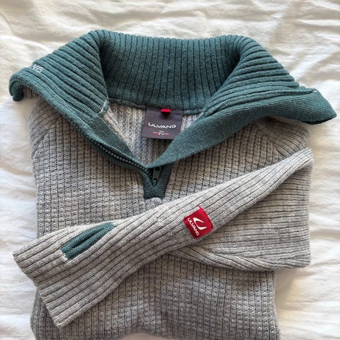 Ulvang ullgenser i størrelse L. Selges rimelig da det er et lite hull på den ene ermen. Ellers i fin stand