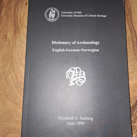 Innbundet oppslagsverk om norsk arkeologi. Mange illustrasjoner og forklaringer av begreper, funn og historiske perioder.