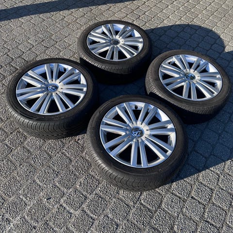 Kia Ceed (2008 mod) alufelger med Continental PremiumContact 6 sommerdekk. Dekk produsert uke 11 i 2019. Ca. 4mm mønsterdybde. Pris 100kr pr stk.