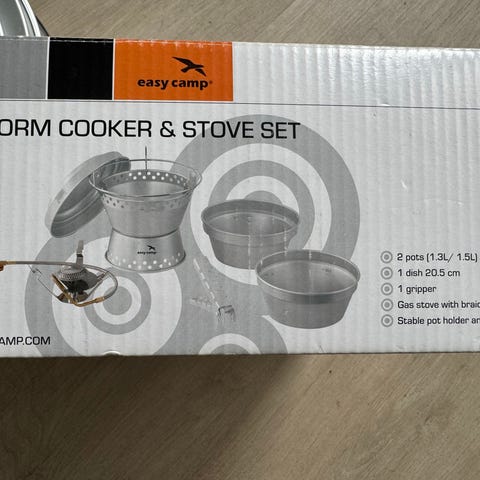 Her har du med andre ord alt du trenger for masse kos og god mat og drikke ute i naturen. Utstyret er brukt 8-10 ganger. Alt har fungert fint hver gang. Har vært lagret tørt og det integrerte batteriet ser ut til å fungere helt fint fortsatt. Dette er versjon 2 og ikke 2+ som selges mange steder nå for tiden. Den eneste forskjellen jeg vet om, er at 2+ har fått et litt større batteri på 3200 mAh. Alt hovedutstyret kommer pakket "inni" hverandre i kjekke poser, som gjør at det er enkelt å slenge det i ryggsekken. Brenneren kan brenne det meste som er tørt, men jeg synes den er ekstra god med pellets (de brenner også litt lenger enn kvister)