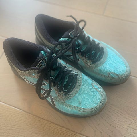 Asics Gel‑Nimbus 27 i størrelse 38. Kjøpt brukt på Finn, og jeg har selv kun løpt ca. 5 km med dem. Forrige eier hadde anslagsvis 3–4 turer. Skoene er i god stand, myke og komfortable, men blir solgt fordi de er litt feil for foten min.