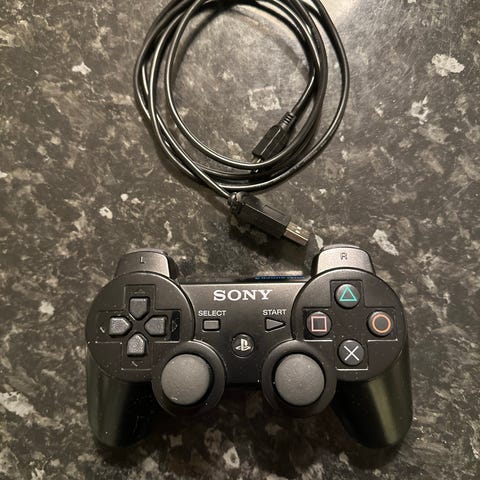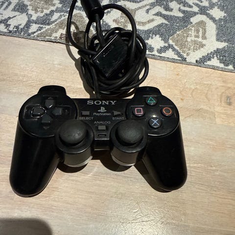 Sony DualShock 2 kontroller med kabel i svart farge.