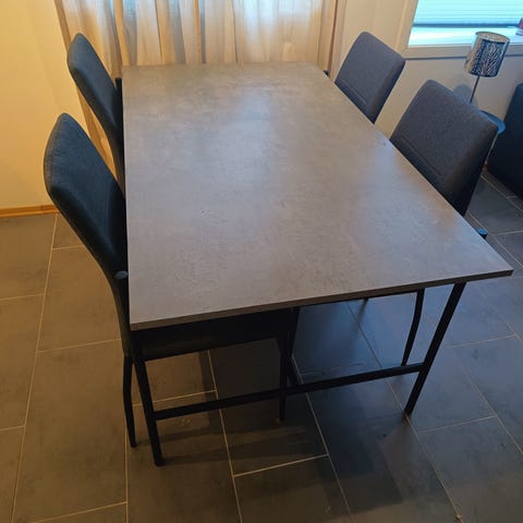 6 stk eik spise stoler selges billig da vi skal bytte til noen mindre. Stoffet renses og de kan trekkes om om ønskelig