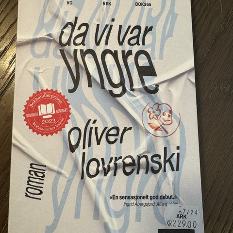 Aschehoug Da vi var yngre bok. Skjønnlitterær bok skrevet av Oliver Lovrenski, utgitt på forlaget Aschehoug. Innbundet utgave med omslag. Tekst på norsk.