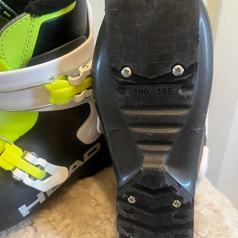 Salomon Ghost FS 90 alpinstøvler i grønn, svart og oransje fargekombinasjon. Modellen har fire spenner og kraftig powerstrap øverst for god tilpasning rundt leggen. Støvlene har tydelig merking av modellnavn og flex (FS 90) på siden. Ytterskall i plast med forsterkninger og innersko med oransje detaljer. Passer til alpint/frikjøring i alpinanlegg. Størrelse er merket på hælen (ikke fullt lesbar på bildet) og kan kontrolleres nærmere av selger. str 26,5