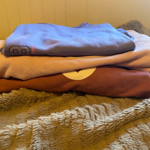 Den rosa genseren fra Tommy hilfiger er brukt 2 ganger. Ble glemt I skuffen.