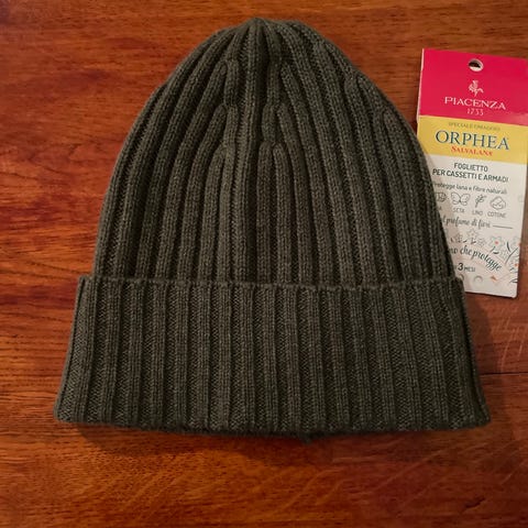 Selger en ekte Piacenza 1733 cashmere-lue (italiensk luksusmerke, grunnlagt i 1733) – supermyk, ribbestrikket og tidløs klassiker som passer både til hverdags og mer elegant look. 👌