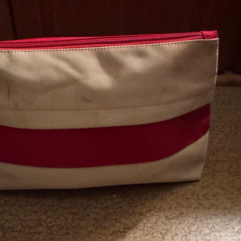 H&M toalett mappe for dame i kunstlær i rosaaktig farge. Vesken har flere rom med glidelås og gjennomsiktige plastlommer på innsiden som gjør det enkelt å organisere innholdet. Egnet til oppbevaring av toalettartikler, sminke eller andre småting. Laget i kunstlær med myk overflate.