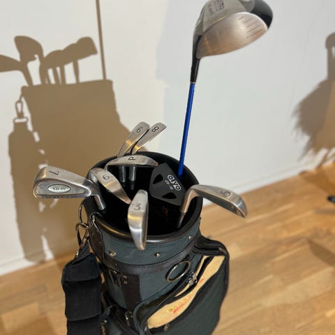 Selger et komplett golfsett som passer både til nybegynnere og viderekommende. Settet inneholder slt du trenger for å komme i gang. Driver, hybrid, jern, wedger og putter. Settet er pent brukt og i god stand, men inneholder normale bruksmerker.
