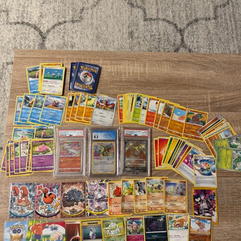Selger et flott Pichu Pokemon kort samt andre kort på bildet.