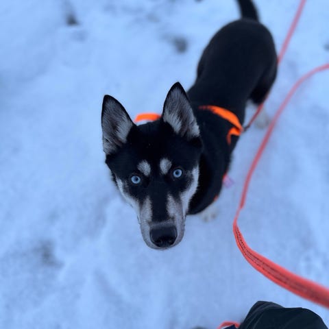 2 års gammel hannhund søker eget hjem.