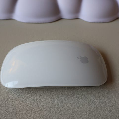 Apple Magic Mouse datamus i svart. Trådløs mus som passer til bruk med Mac. Glatt overflate med berøringsfunksjon på toppen for navigering og rulling.