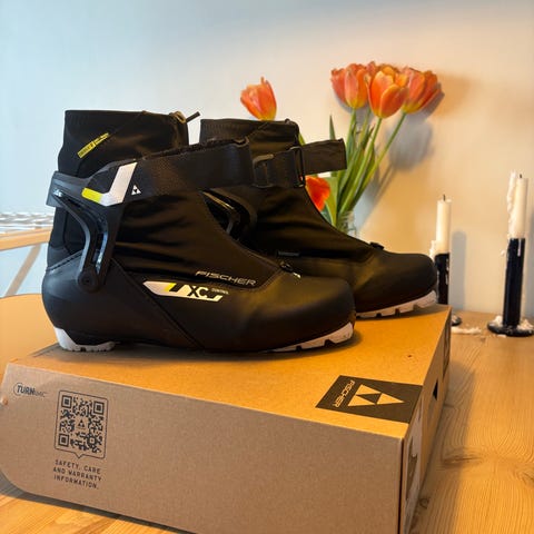 Fischers populære skisko i St 37 for en vellykket start i sporet. Brukt en gang som helt ny. God passform og overtrekk i neopren holder føtter varme og tørre og gjør skoene svært aktuelle for de yngste. Myk såle for naturlig fleksibilitet i foten. Og ikke minst matcher det tøffe svarte og gule racingdesignet sprintskiene.