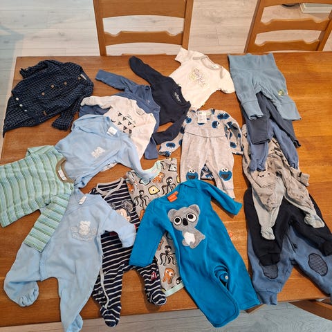 37 plagg totalt. Alt er i str 62. Godt brukt, men mye bruk igjen. Flekker kan forekomme.