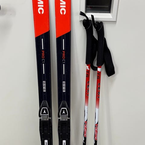 Skiene er satt inn med hurtigglider.