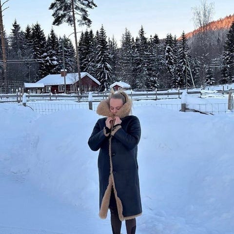 Den er en blanding av polyester og akryl. Noe som gjør at den holder deg god og varm samtidig som det er et dyrevennlig alternativ til ekte skinn.