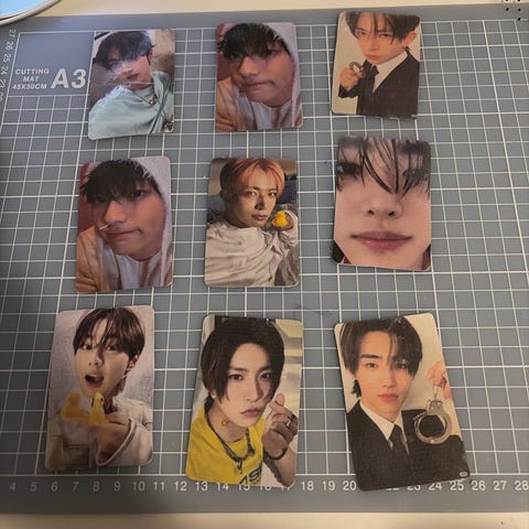 Forskjellige kpop photocards til salgs, alle er i bra stand, grupper som ZB1, Bts, Boynextdoor, Ateez og Enhypen. Villig til å trade for spesifikke kort, send gjerne bilde av hva du da tilbyr :)
