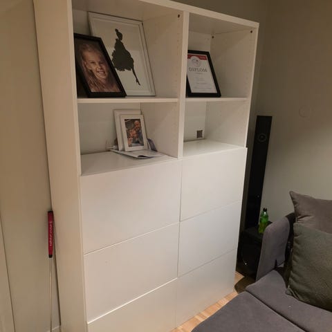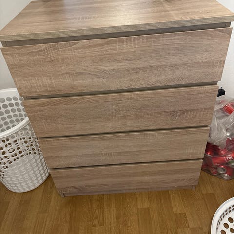 Kommode til salgs da vi har flyttet og ikke har noe plass til den. Har et bruksmerke på platen som vist i siste bilde, kan lett fikses med et strøk med hvit maling hvis det trengs. Ellers er kommode fin og hel. Selges som den er.