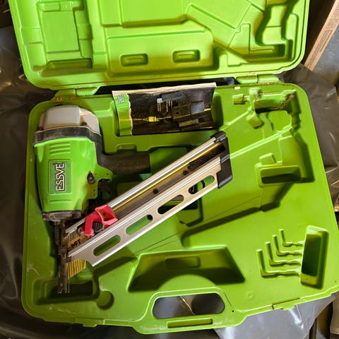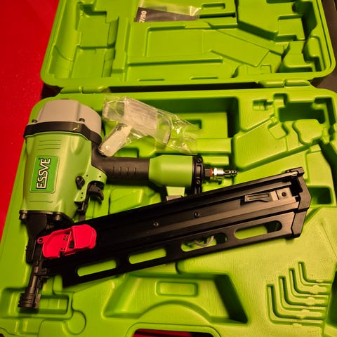 Essve FN 34/90 spikerpistol for spiker opptil 90 mm med 34° rettbåndet magasin. Egnet til sammenføyning av trekonstruksjoner som stendere, lekter og reisverk, samt til festing av råspont, lekter, fasadekledning og spikring av utforing og panel. Modellen har pistolgrep og vinklet magasin som gir tilgang i trange områder. Drevet av trykkluft (kompressor kreves).