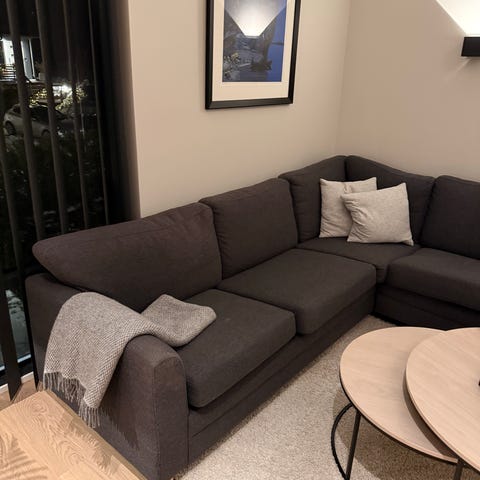Sofa er lite brukt og fremstår som ny, kjøpt i aug 2024. Den kommer fra et rent hjem med voksne barn, uten dyr og røyk.