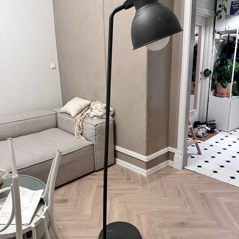 Gulvlampe fra watt & VEKE. Modellen heter Tyra. Lampen er oppladbar og kan dimmes/har flere lys styrker.