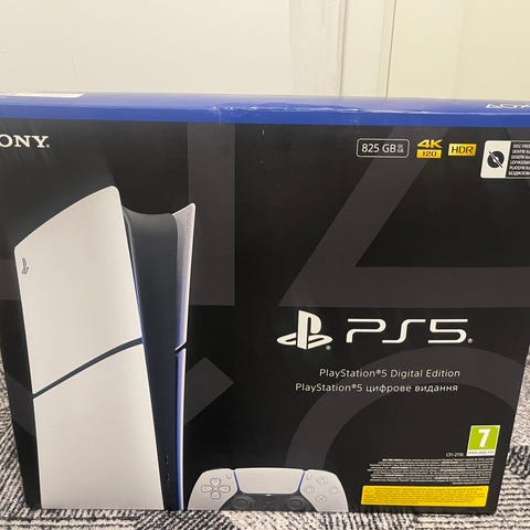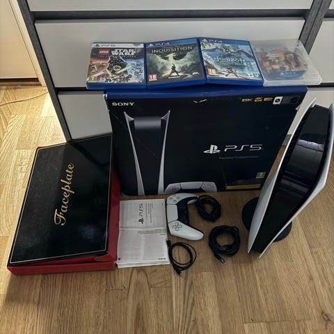 Selger en Playstation 5 Digital Edition i Topp Tilstand (Med kontroller, tilbehør og originaleske)