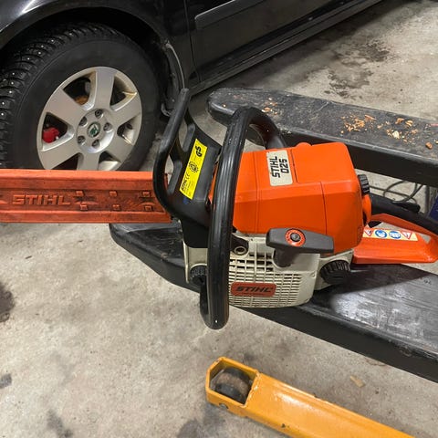 Må repareres, i mitt eie siden den var ny, brukt til eget vinterbrensel. Siste årene har jeg brukt en lettere sag.