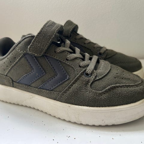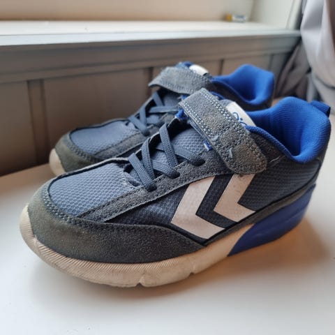 Hummel sneakers for barn i størrelse 35. Unisex-modell i marineblå farge med hvite detaljer. Skoene har kombinasjon av lisser og borrelås for enkel tilpasning og av- og påkledning. Overdelen er i tekstil med syntetiske forsterkninger, og sålen er i gummi. Kun brukt et par ganger.