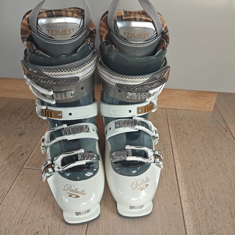 Rossignol alpinstøvler i størrelse 215 (255 mm sålelengde). Støvlene er grå med røde detaljer og har tre justerbare spenner foran samt en bred toppstropp for bedre støtte rundt ankelen. Innermodellen er polstret for komfort og varme. Passer til vanlig alpinbinding med angitt sålelengde på 255 mm.
