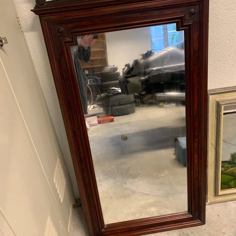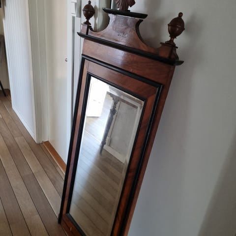 Ramme, speil, bakside og oppheng er intakt og det er ingen synlige skader eller bruksmerker.