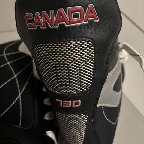 Cycab Toronto ishockeyskøyter i størrelse 43. Modellen har svart og hvit overdel med røde detaljer og tradisjonell snøring. Skøytene har fast hælkappe og polstret ankelparti for støtte rundt foten. Blad i metall med hvit holder. Egnet til ishockey og generell bruk på is for voksne med skostørrelse 43.